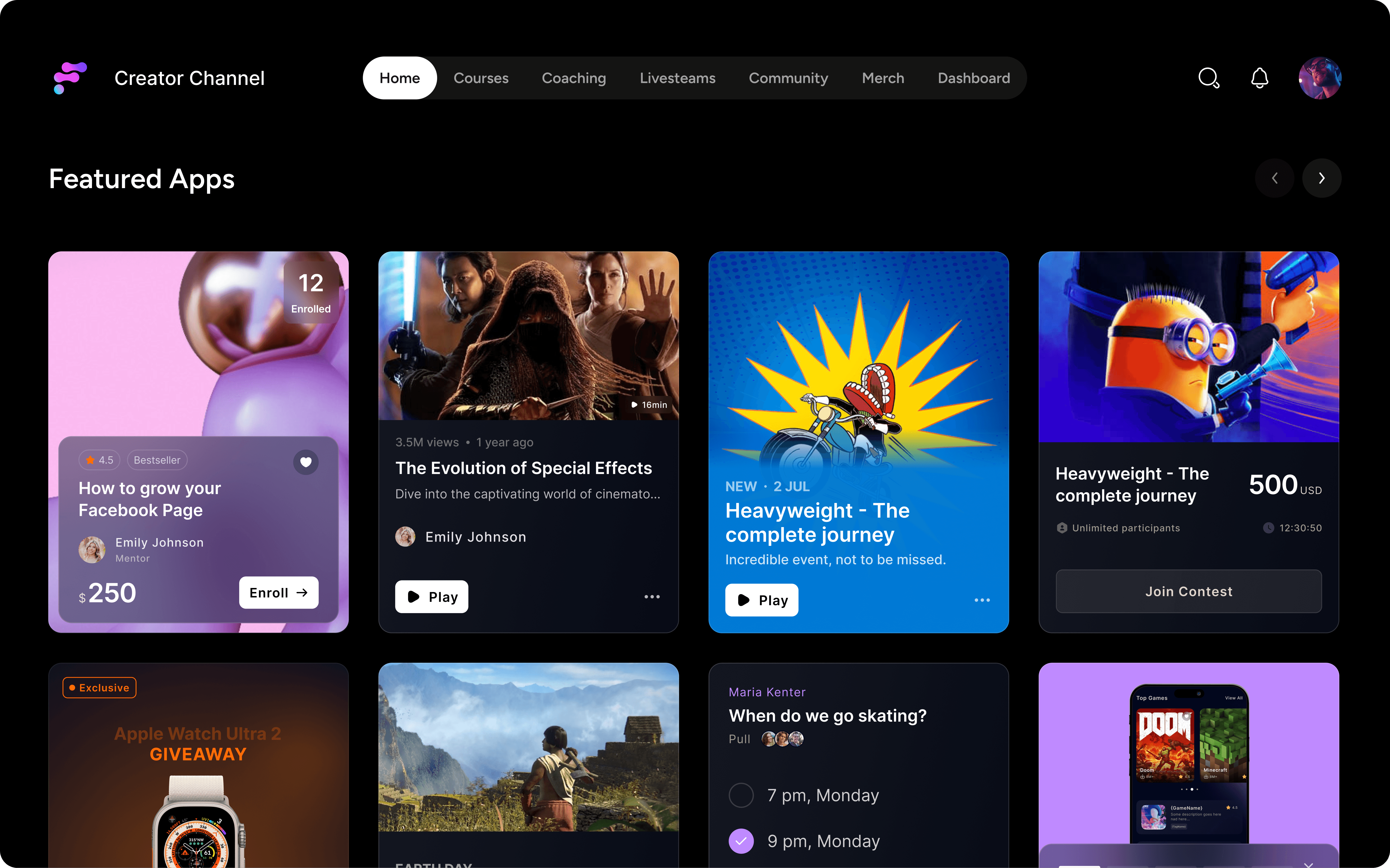 Enhance your platform with powerful apps that help you create, connect, and monetize—tailored to your audience's needs.
